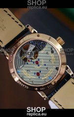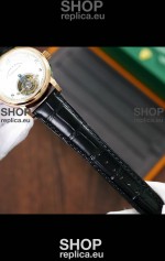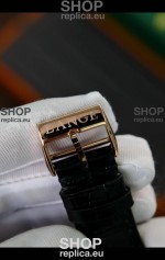 Genuine Black Leather Strap with A.Lange Sohne Stamped Markings on Strap. Polished Stainless Steel Rose Gold Clasps.