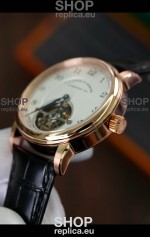 White Dial with Tourbillon located at 6 O clock Position on Dial.