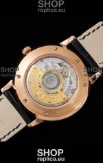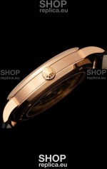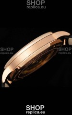 18K Rose Gold Plating on 904 Polished Solid Stainless Steel Case with Open Case Back Cover in Steel. Polished Bezel.
