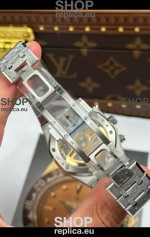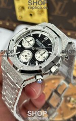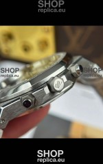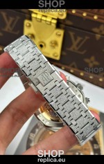 Frosted White Gold Plating on 904L Stainless Steel Strap completed with AP Markings and Engravings as per the originals and AP Folding Clasp