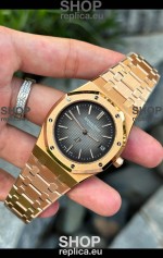Yellow Gold Plating on 904L Brushed Stainless Steel Casing with Audemars Piguet Markings and Engravings