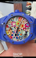Audemars Piguet Super Clone Royal Oak Blue Ceramic Watch in Sun-Flower Dial