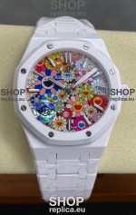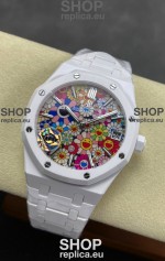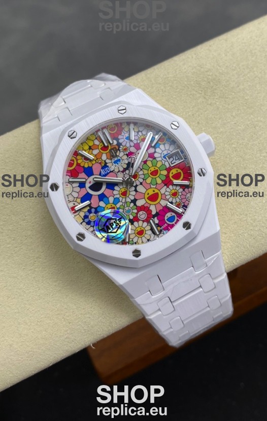 Audemars Piguet Super Clone Royal Oak White Ceramic Watch in Sun-Flower Dial