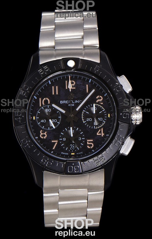 DLC Coating on 904L Steel Case complete with Breitling markings and Details as per the originals.