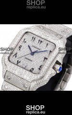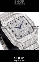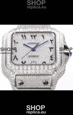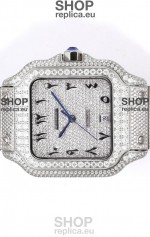 Cartier "Santos De Cartier" Stainless Steel W/ Diamonds Arabic Dial 1:1 Mirror Replica - 40MM - Genuine Diamonds