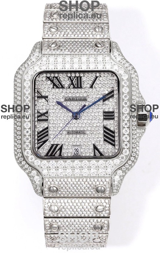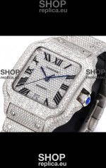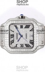 Cartier "Santos De Cartier" Stainless Steel W/ Diamonds Roman Dial 1:1 Mirror Replica - 40MM - Genuine Diamonds