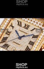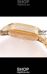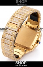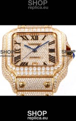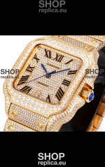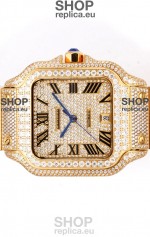 Cartier "Santos De Cartier" Yellow Gold W/ Diamonds Roman Dial 1:1 Mirror Replica - 40MM - Genuine Diamonds