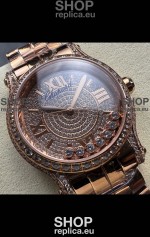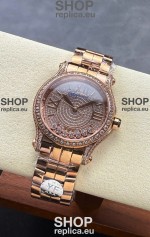 Chopard Happy Sport Super Clone Automatic Watch 36MM in Rose Gold Casing Mossanites Dial