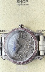 Mossanites Paved Dial with Rose Gold Roman Hour Numerals and Date Window at 4 O'Clock, Signature Floating Diamonds on Dial