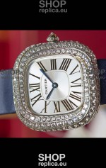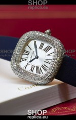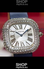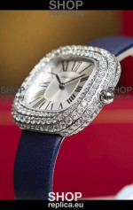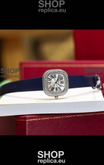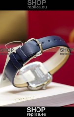 Coussin De Cartier Steel Watch Swiss Replica Watch Blue Strap