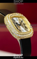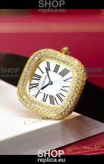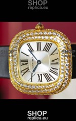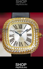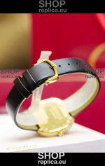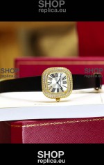 Coussin De Cartier Yellow Gold Swiss Replica Watch Black Strap