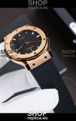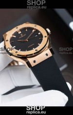 Genuine Rubber Strap with Rose Gold Folding Clasp complete with Hublot Markings and Engravings.