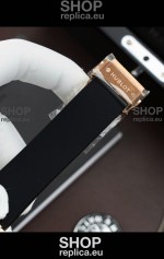 Rubber Strap with Rose Gold Folding Clasp complete with Hublot Markings and Engravings.