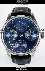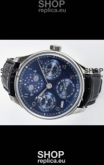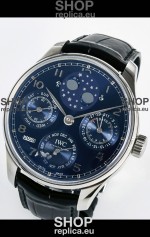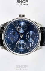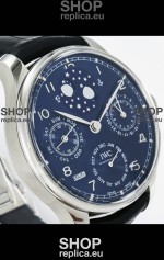 IWC Super Clone Portuguese Perpetual Calendar Stainless Steel Blue Dial Replica Watch