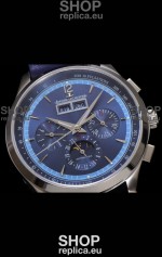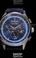 Jaeger LeCoultre Master Control Chronograph Calendar Steel Casing Blue Dial Watch