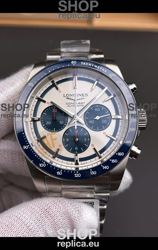 Longines Conquest Chronograph White Dial Automatic Watch in Steel Casing