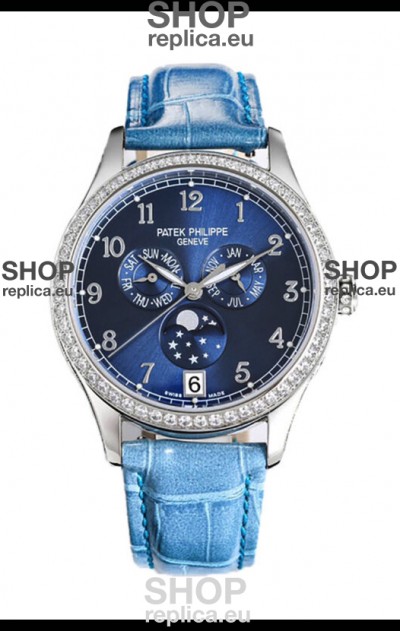 Jaeger LeCoultre Super Clone Master Ultra-Thin Perpetual Calendar White Dial Diamonds Bezel Watch