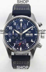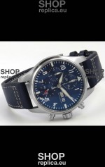 IWC Super Clone Pilot Chronograph Edition Blue Dial Leather Swiss Replica Watch
