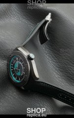 Black Rubber Strap with Omega Styled Folding Clasps complete with Omega Markings and Engravings