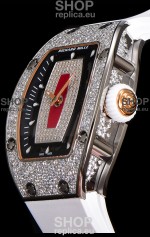 Richard Mille RM007 Diamonds Paved White Strap Red Dial 904L Steel Superclone Swiss Watch