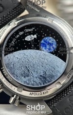 The Globe Located at the rear would rotate and complete one revolution per Minute, the Snoopy on Spaceship would rotate counter clockwise in conjunction to the Chronograph second hand once the Chronograph feature is activated.
