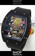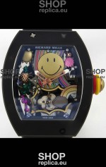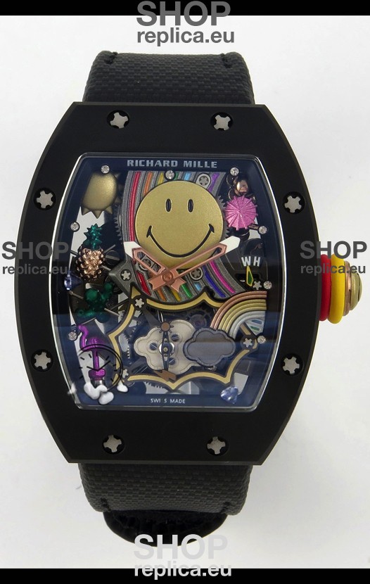 Richard Mille Super Clone RM088 Smiley Tourbillon Black Ceramic Velcro Strap Watch