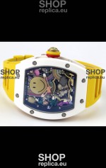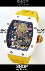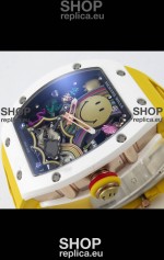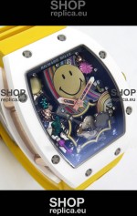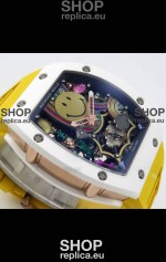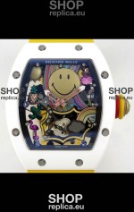 Richard Mille Super Clone RM088 Smiley Tourbillon White Ceramic Rubber Strap Watch
