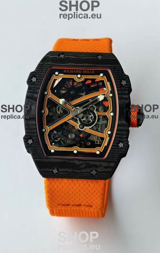 Richard Mille Super Clone RM65-01 Carbon Casing Replica Watch in Orange Strap