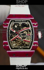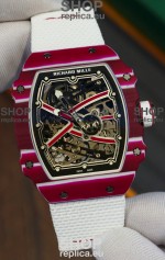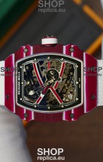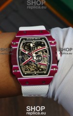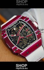Richard Mille Super Clone RM67-02 Mutaz Barshim Red Carbon TPT 37 Grams Watch White Strap