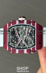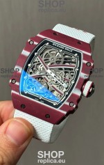 Richard Mille Super Clone RM67-02 Mutaz Barshim Red Carbon TPT 37 Grams Watch White Strap