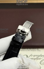 Genuine Black Leather Strap with Stainless Steel Deployant Clasps