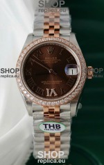 Rolex Datejust Cal.3235 Movement Super Clone Rose Gold 2 Tone 31MM Brown Dial Watch