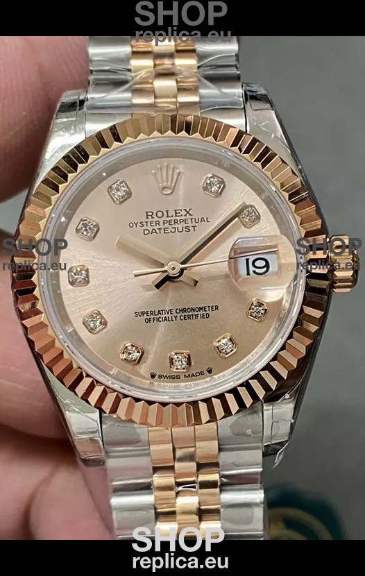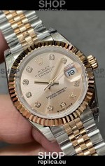 18K Rose Gold Plating Two Tone on 904L Stainless Steel with Folding Clasp, End links match up Flush with the Case. - A Much Improved Datejust Strap Version