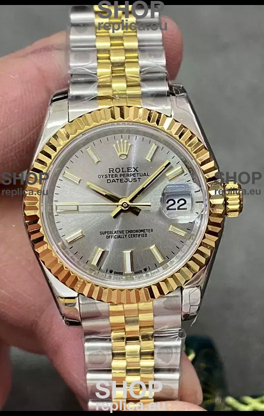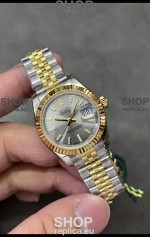 Rolex Datejust Super Clone Grey Dial 2 Tone Yellow Rose Gold Watch 28MM