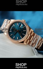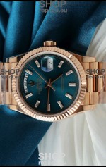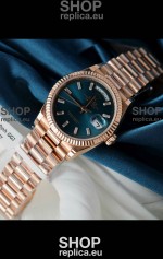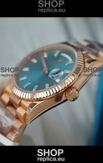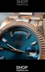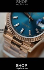 Rolex Day Date Super Clone Rose Gold Blue Dial Crystal Numerals Watch 36MM - 1:1 Mirror Quality