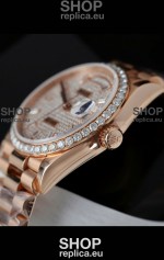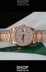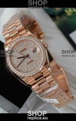 Rolex Day Date Super Clone Rose Gold Plated Custom Modified Diamonds Paved Watch