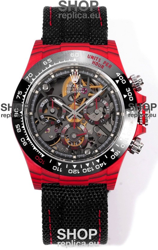 Rolex Daytona Blaken Red Carbon 1:1 Swiss Mirror Replica Skeleton Dial Cal.4130 Movement