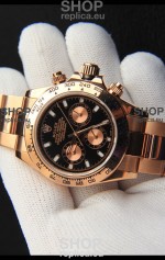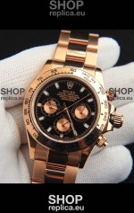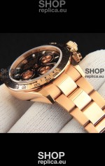 Rolex Daytona Japanese Movement Gold Casing Replica Watch in Black Dial