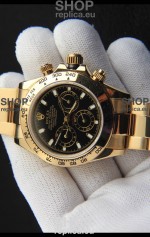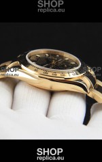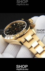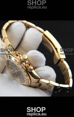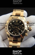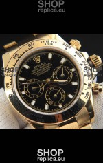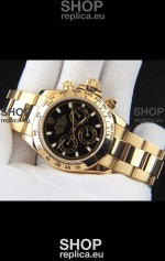 Rolex Daytona Japanese Movement Gold Casing Replica Watch in Black Dial