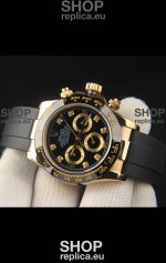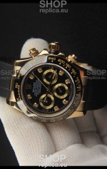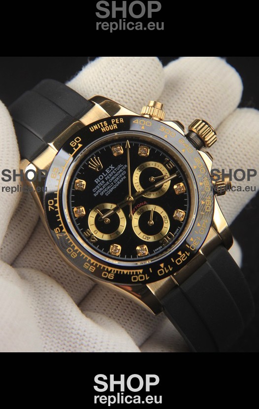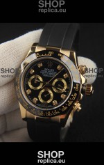 Rolex Daytona Japanese Movement Gold Casing Replica Watch in Black Dial