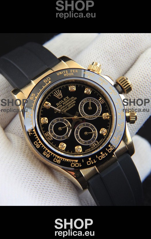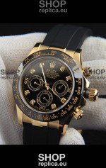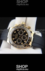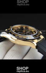 Rolex Daytona Japanese Movement Gold Casing Replica Watch in Black Dial