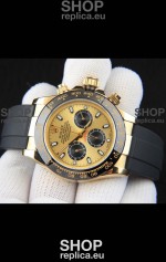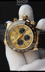 Rolex Daytona Japanese Movement Gold Casing Replica Watch in Gold Dial