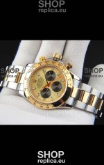 Rolex Daytona Japanese Movement Two Tone Gold Casing Watch in Gold Dial