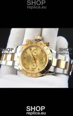 Rolex Daytona Japanese Movement Two Tone Gold Casing Watch in Gold Dial