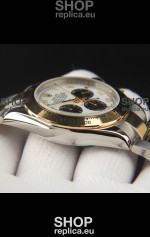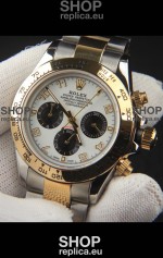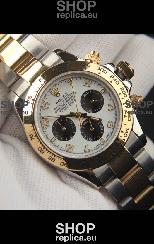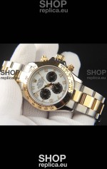 Rolex Daytona Japanese Movement Two Tone Gold Casing Watch in White Dial