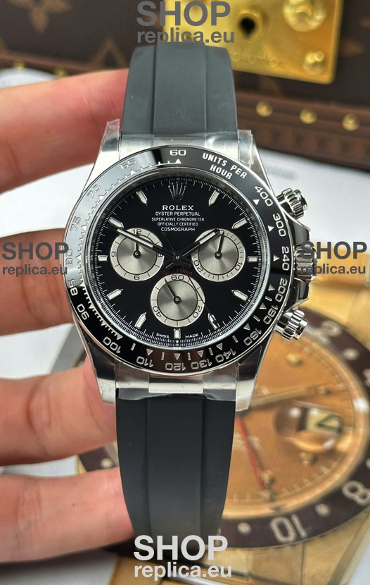 The Best Rolex Daytona Model Replicated up to Date. The First Rolex model to adopt a 904L Steel on Casing and Strap which is the same steel used by Rolex. Compared with an Original Side by Side and there were NO Differences Whatsoever. Complete list of details have been stated below and you will see that tremendous amount of detaiing and work has been put into this edition.