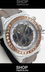 Grey Dial. Three Functional Sub dials working in conjunction to the stopwatch feature as per the originals. Sapphires Bezel