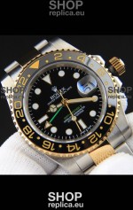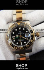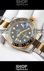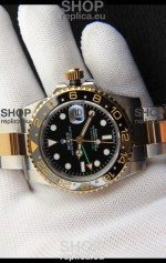 Rolex GMT Masters II 2 Tone Rose Gold Plating Japanese Replica Watch Black Dial