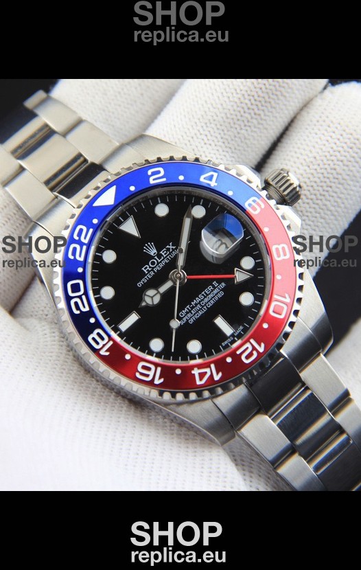 Rolex GMT Masters II Japanese Movement Replica Watch Steel Case Black Dial