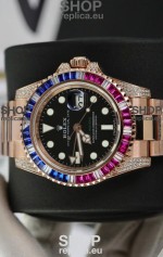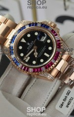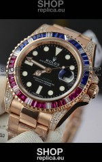 Rolex GMT Masters Super Clone Diamonds Swiss watch with Rose Gold 904L Case - 1:1 Mirror Quality